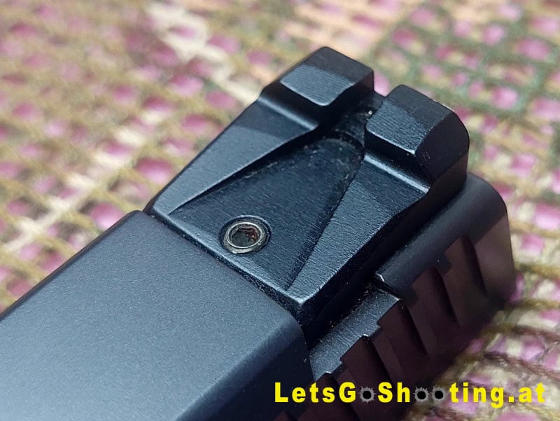 The pistol also includes a Picatinny rail under the barrel for mounting accessories like lights or lasers.
