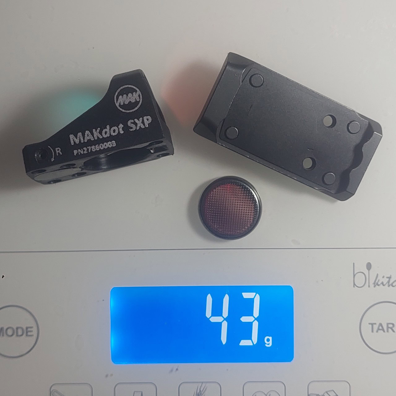 Achja, die Gewichtsangabe von 13g ist etwas irreführend. Das Reddot + Batterie + Adapterplatte liegt bei 43g.